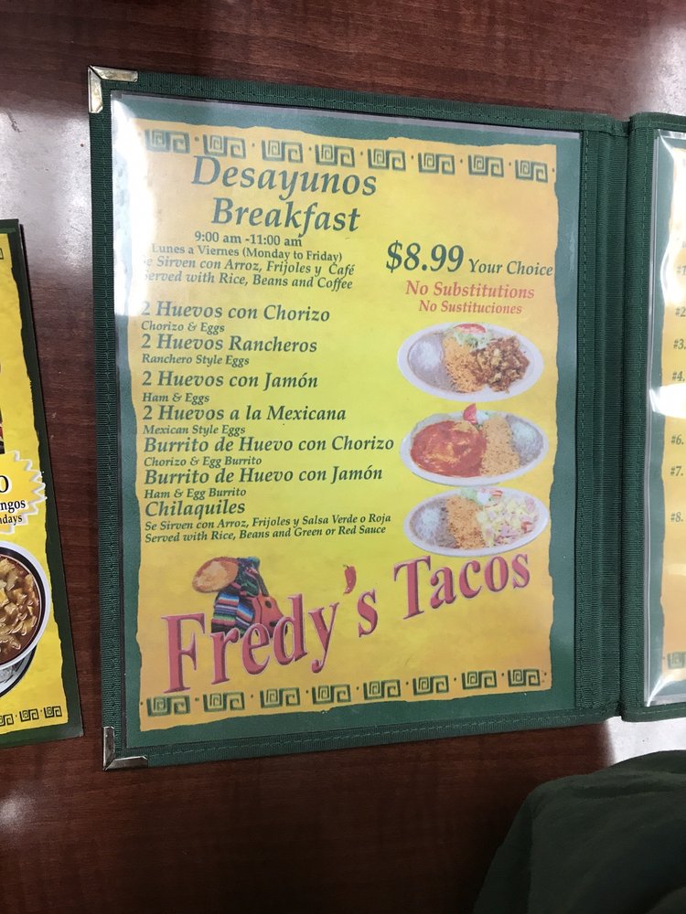 Fredy's Tacos Menu