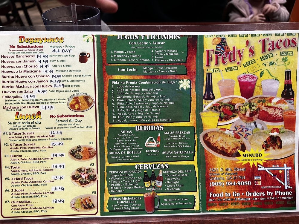 Welcome to Fredy's Tacos, a delightful Mexican eatery nestled in Ontario, CA. This family-owned restaurant is a hidden gem, revered for its authentic flavors and welcoming ambiance. Whether you're in the mood for a hearty breakfast with options like Huevos Rancheros or flavorful tacos, Fredy's diverse menu is sure to impress.